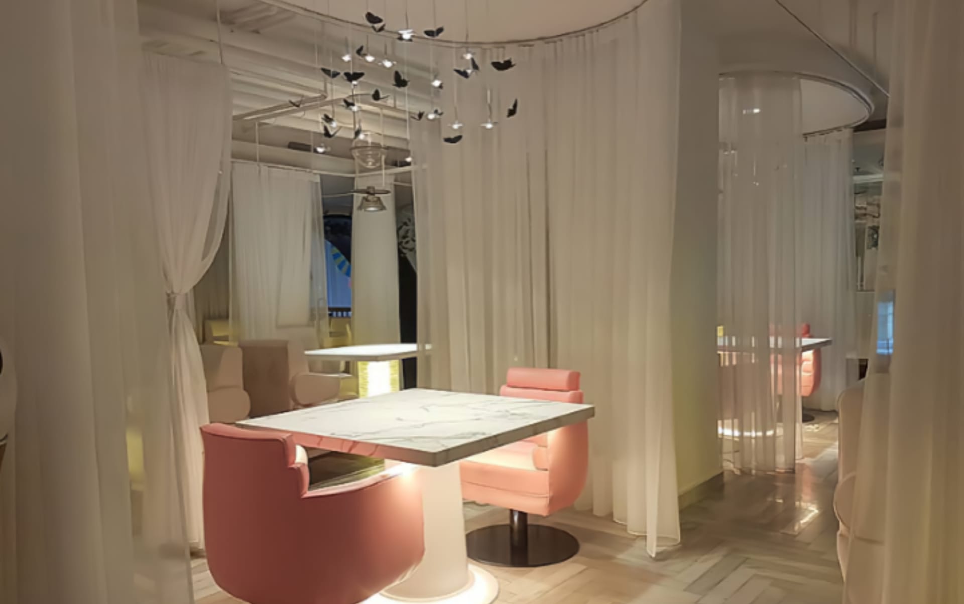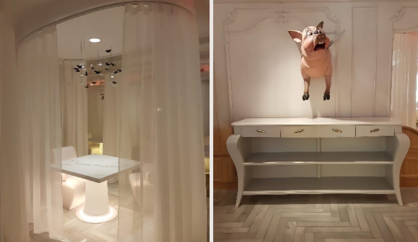 The furniture made ad-hoc, the avant-garde suspension lamps, or the fantasy lamps stand out.
