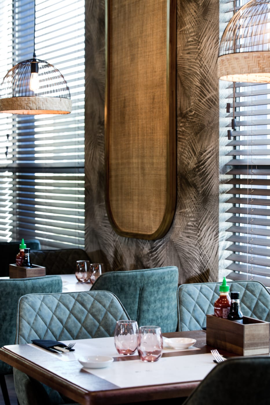 Asian atmosphere with decadent nuances, which in contrast with noble materials create a cosy and comfortable space. Noteworthy are the mixed-media artistic interventions, contextual materials such as raffia and dried bamboo canes or exotic wall coverings.