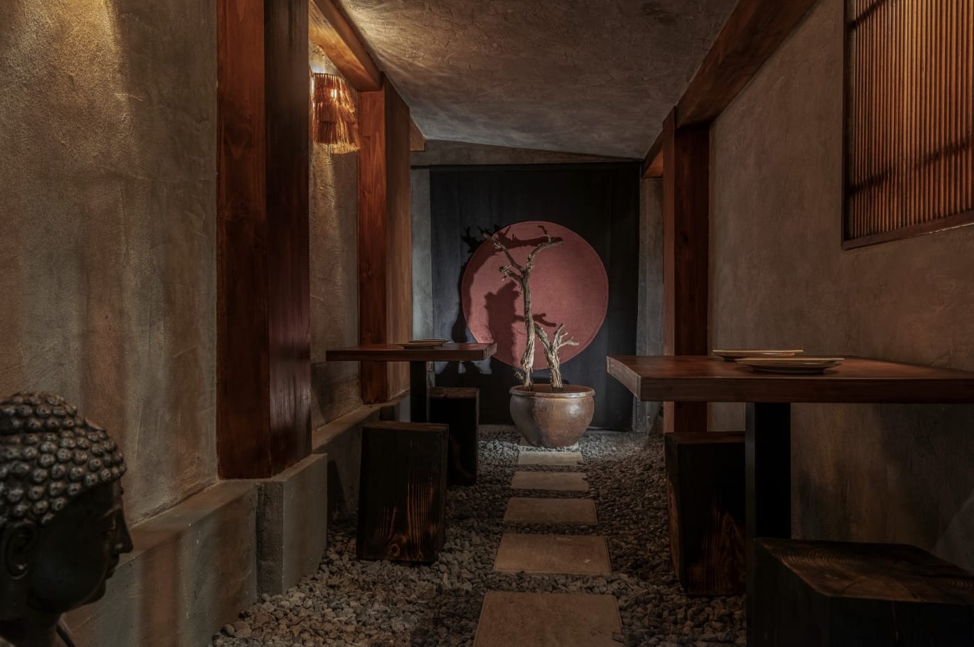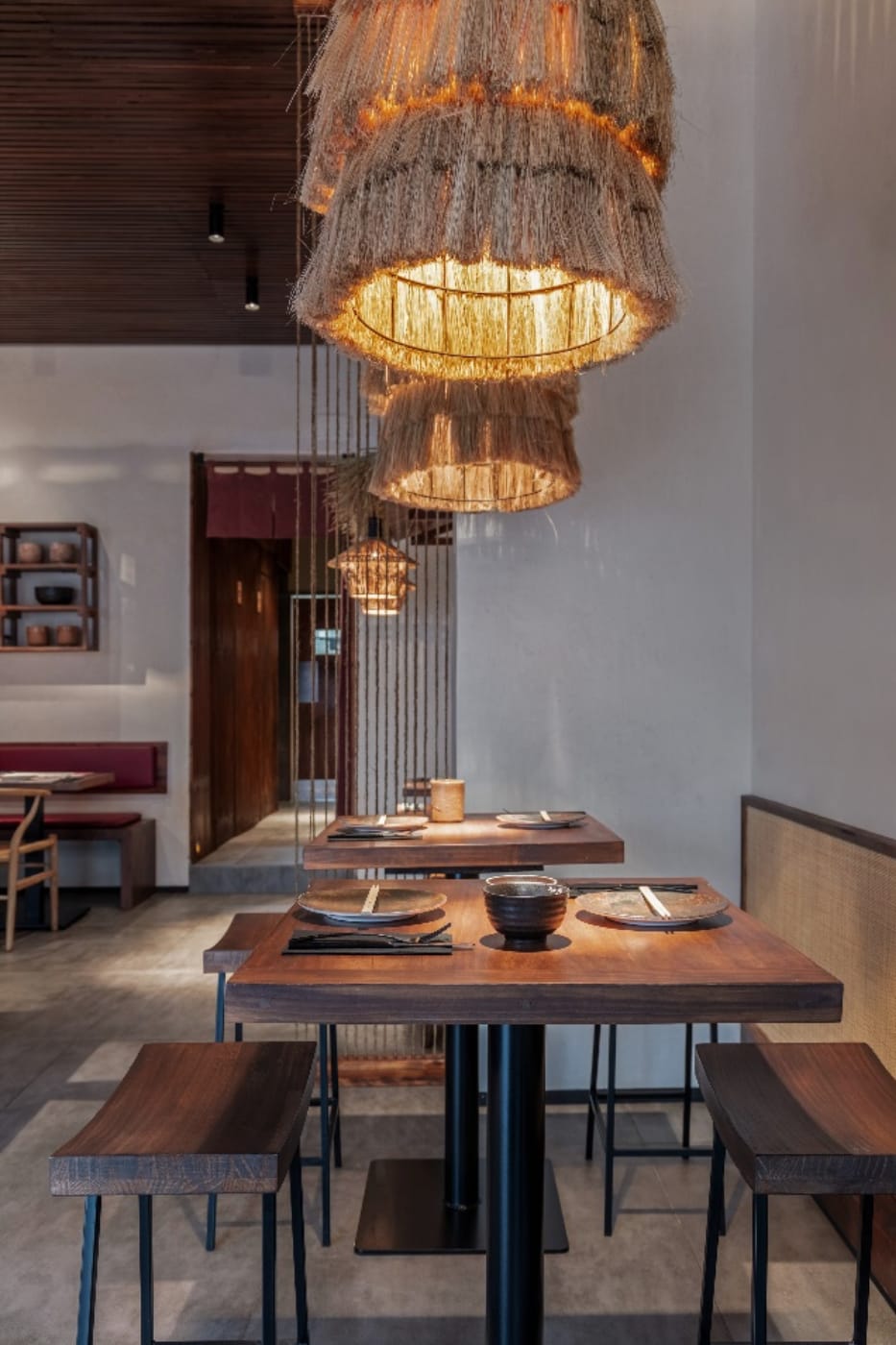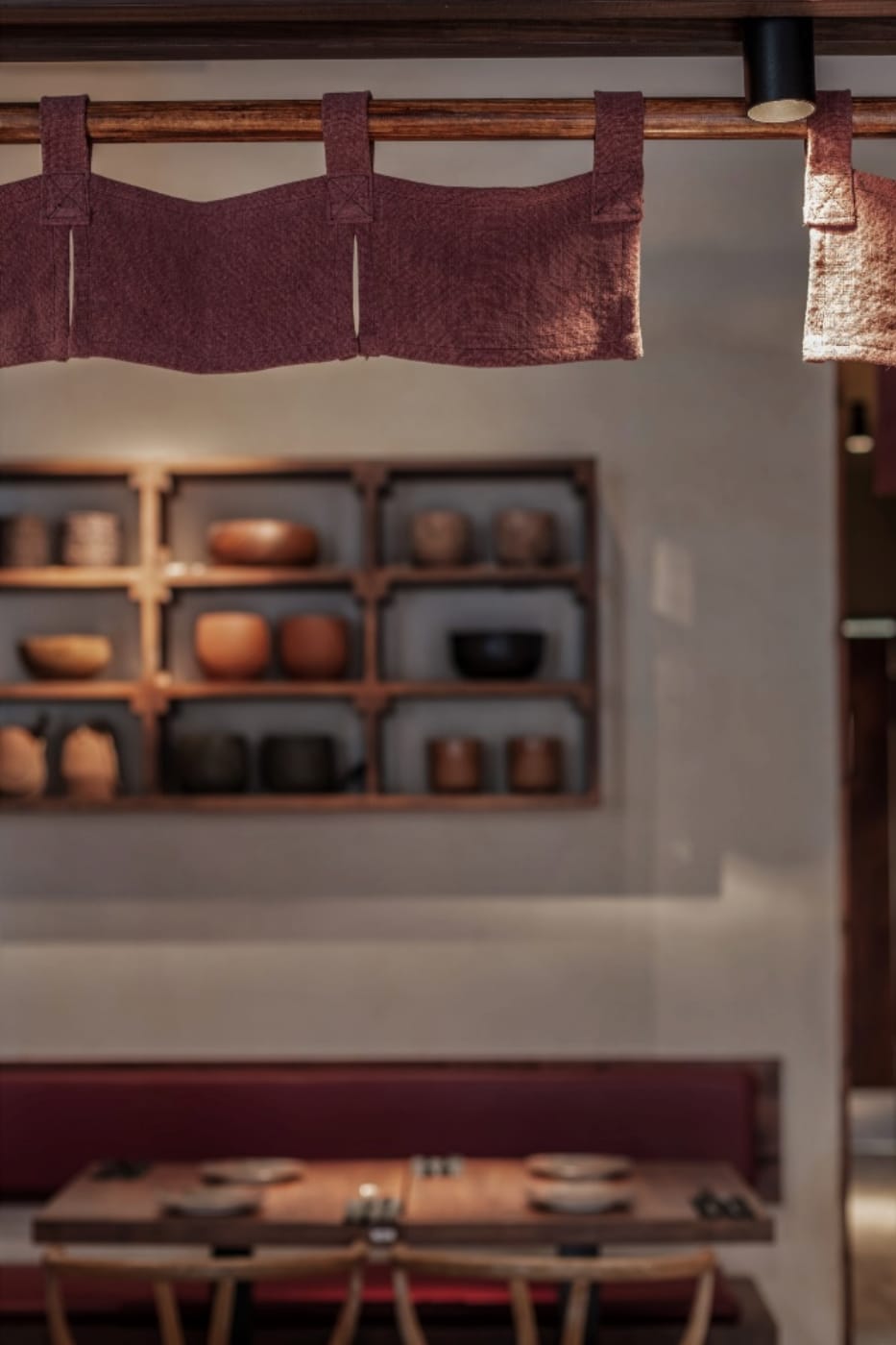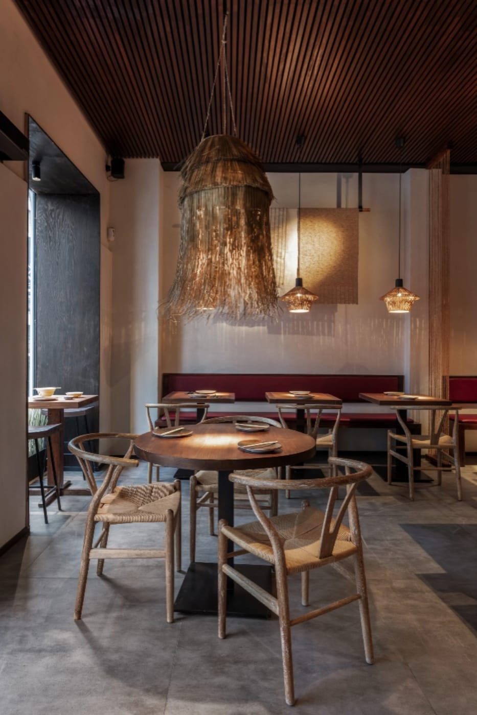 A Japanese restaurant that combines the aesthetics of the most traditional Japan from a contemporary perspective. A rigorous design, of pure lines and natural materials and coverings. A space where the simplicity of the materials and the lighting favor a relaxed atmosphere. Featuring a nod to Japanese gardens, a visual experience within a visual experience. Particularly noteworthy is the use of wood, linen, leather, lime mortar, and natural fibers. There is subtle, punctual lighting that helps the restaurant to transmit a different day-night experience. A whole range of content tailor-made for the restaurant.