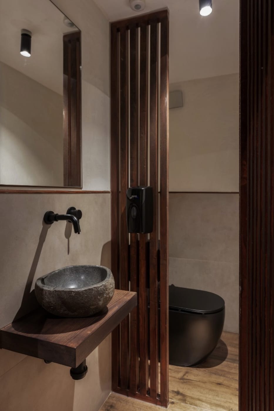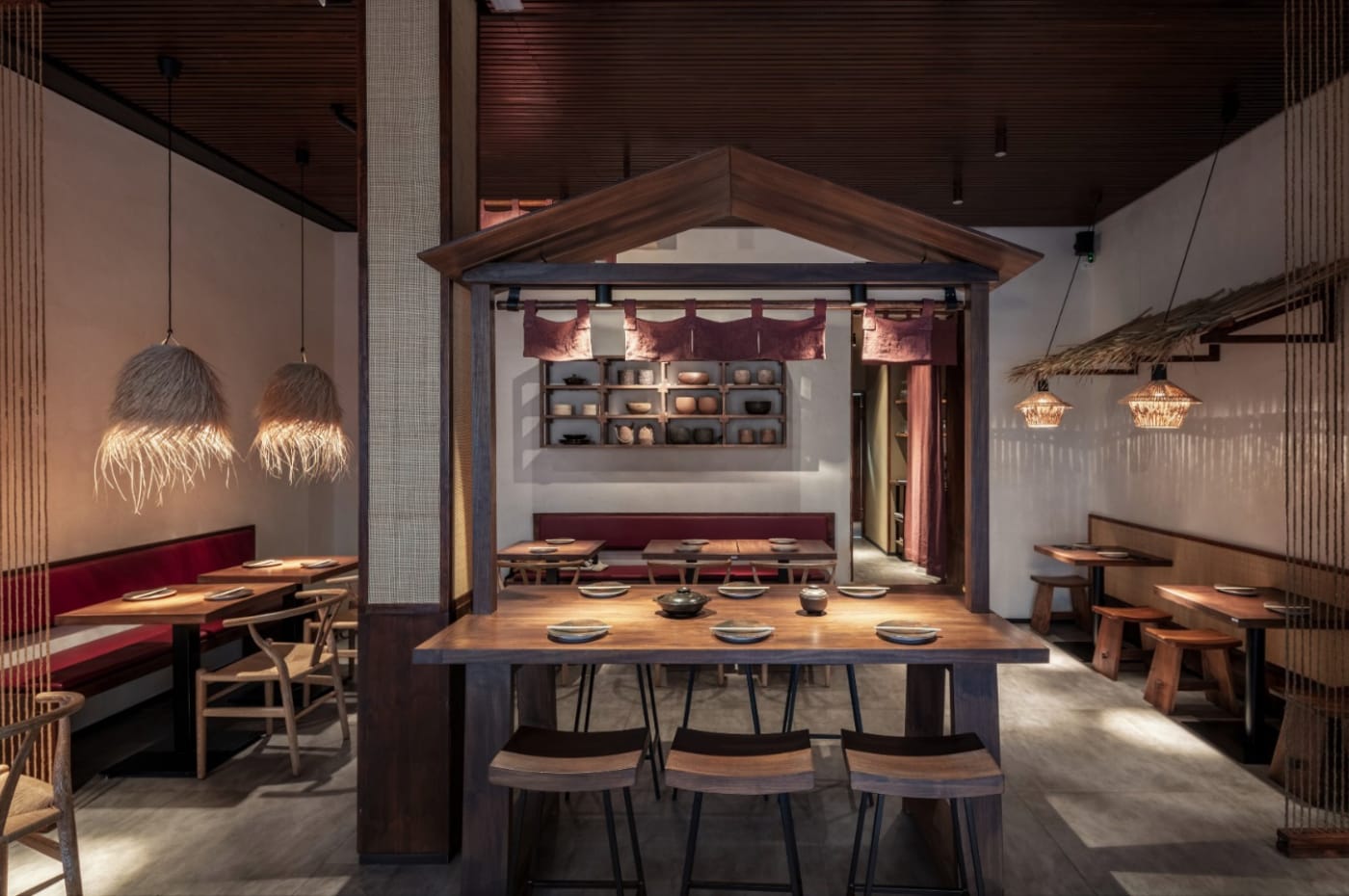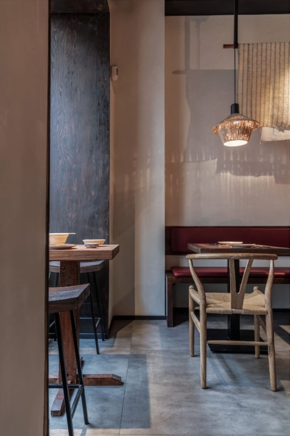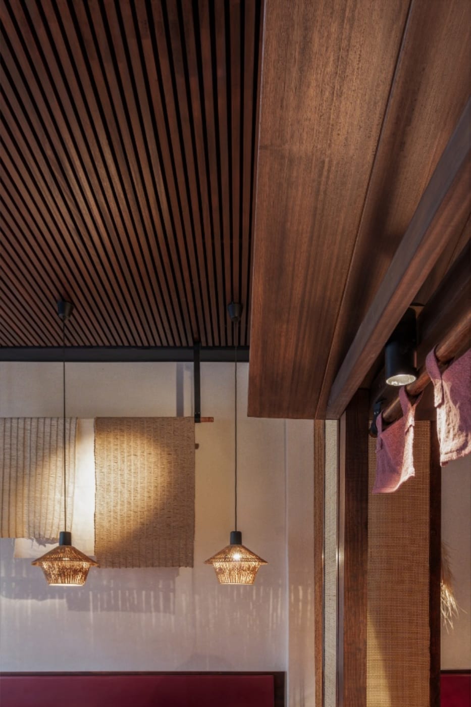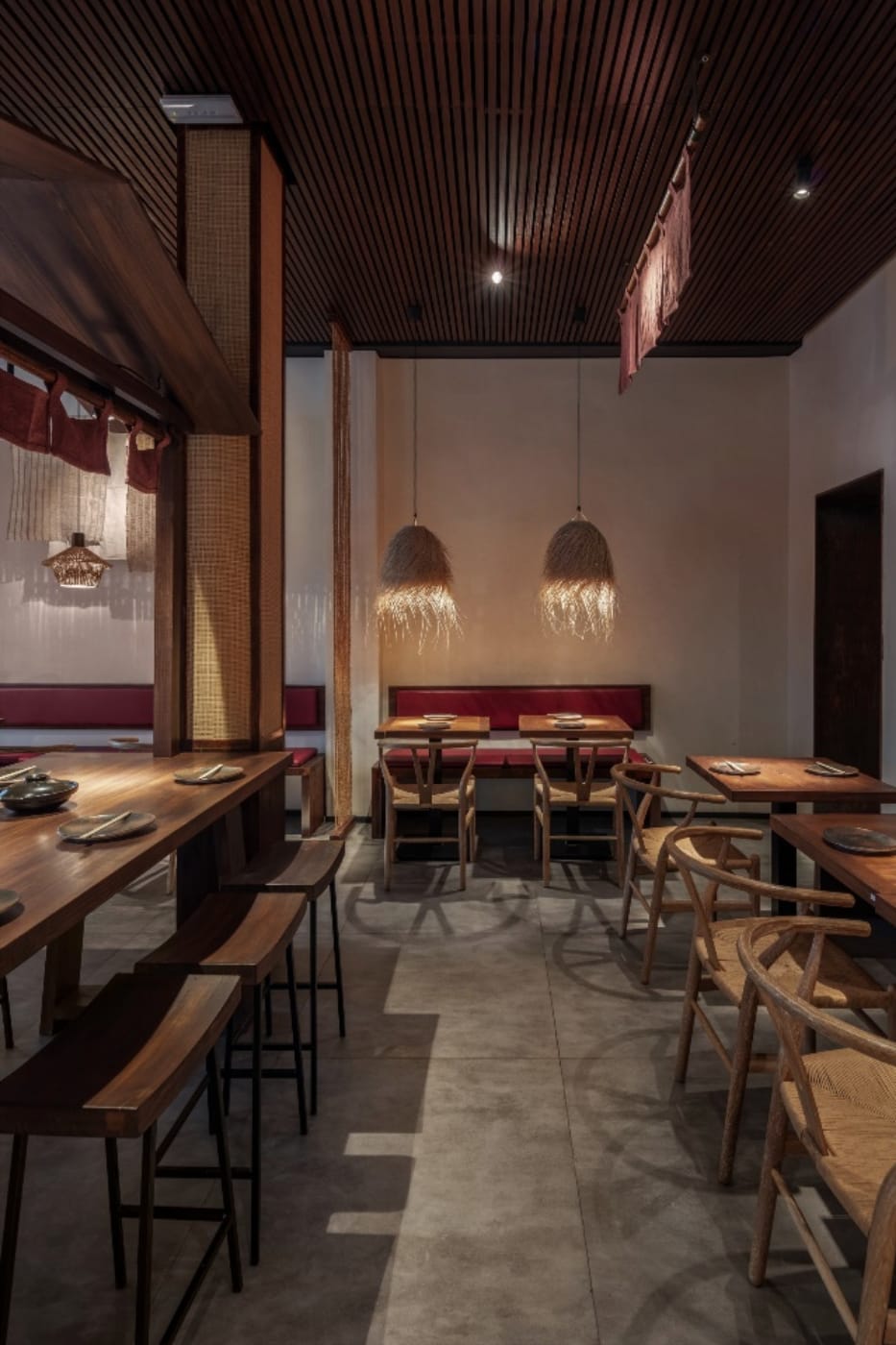 A Japanese restaurant that combines the aesthetics of the most traditional Japan from a contemporary perspective. A rigorous design, of pure lines and natural materials and coverings. A space where the simplicity of the materials and the lighting favor a relaxed atmosphere. Featuring a nod to Japanese gardens, a visual experience within a visual experience. Particularly noteworthy is the use of wood, linen, leather, lime mortar, and natural fibers. There is subtle, punctual lighting that helps the restaurant to transmit a different day-night experience. A whole range of content tailor-made for the restaurant.
